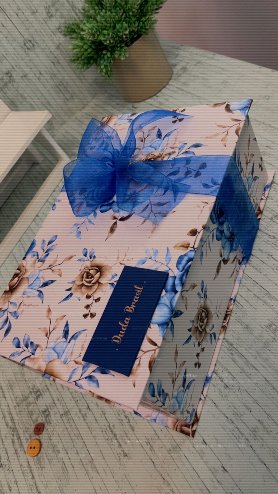 Caixa Cartonada 27x17x9cm - Fundo Floral azul